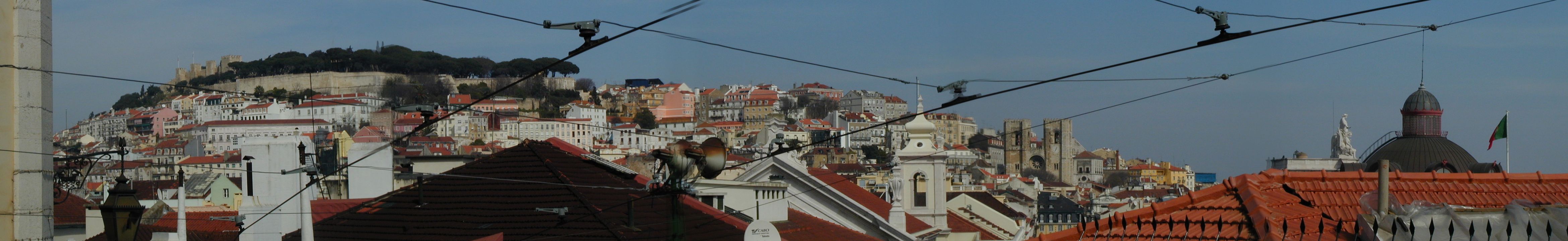 fotografia mostra, da esquerda para a direita, o Castelo de São Jorge,