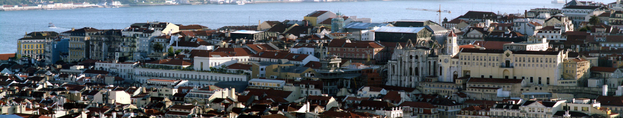 esquerda vê-se o Castelo de São Jorge, seguido das colinas do Bairro