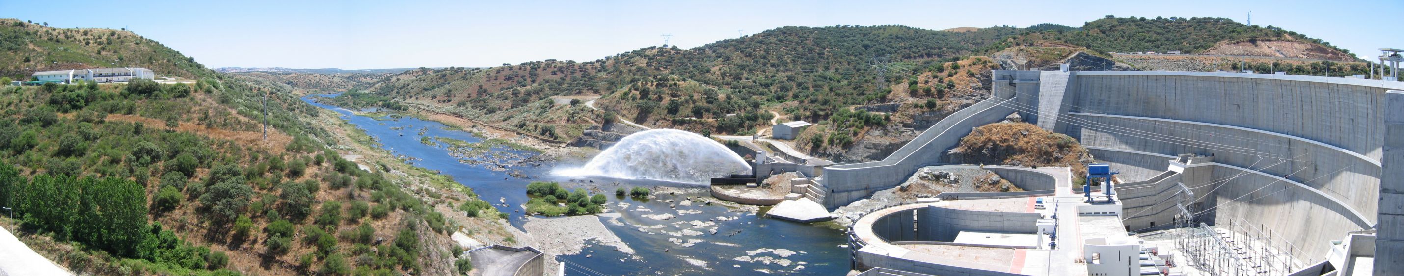 da barragem e descarregador de Alqueva no Rio Guadiana. Esta barragem foi