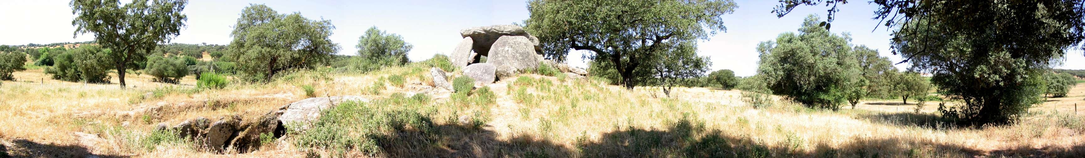 e laje de cobertura quebrada. Em primeiro plano, à esquerda da anta, é